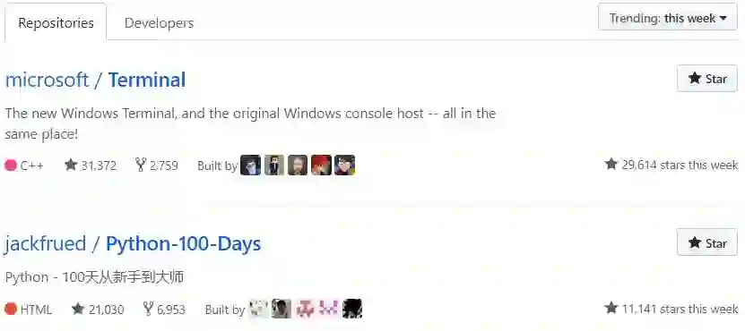 在GitHub Trending榜单中,仅次于微软前几日发布的命令行工具 Terminal: