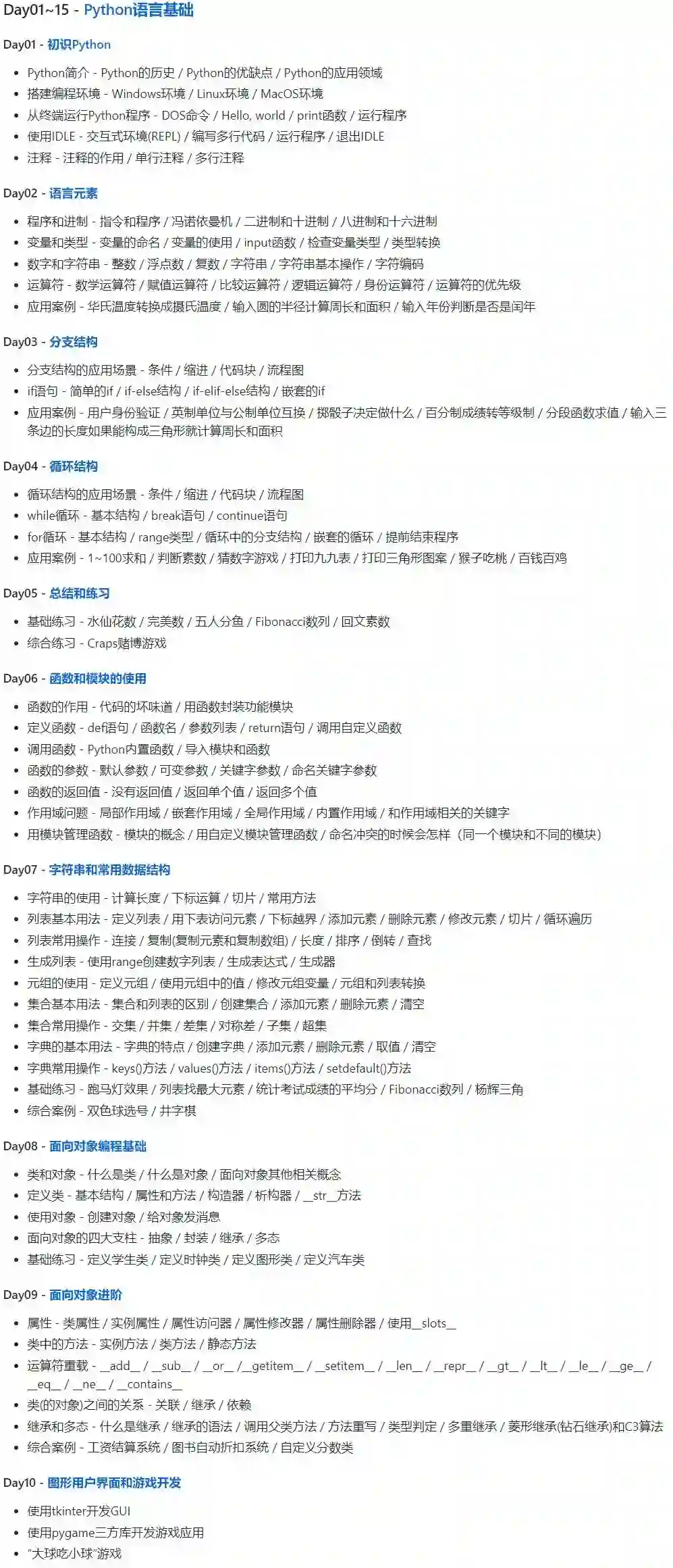 以下是 Day 1-Day 10的详细内容: