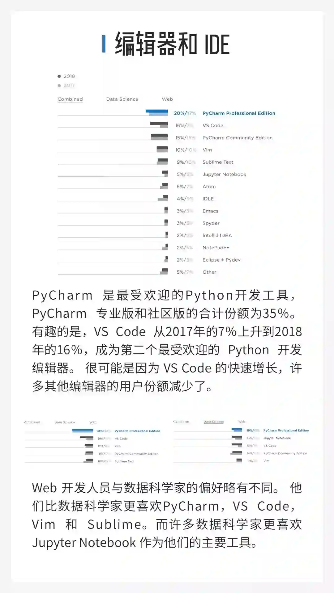 值得一提的是,即使是 jetbrains 合作出品的,在收集数据时也没有偏袒任何一类编辑器用户群。