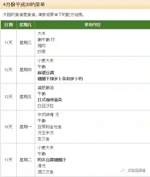 这是日本吹田市一所中学的4月份菜谱
