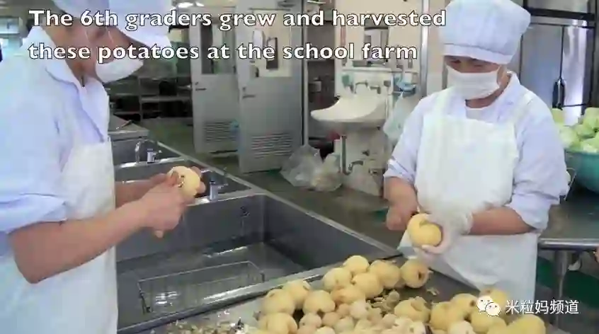 今天的食材,是这个学校6年级学生在校园农场里耕种的。自己种的菜,变成中午的午餐,给孩子们的感觉一定很奇妙吧。要知道,好多从小被捧在手心的孩子根本不认识农作物呢。