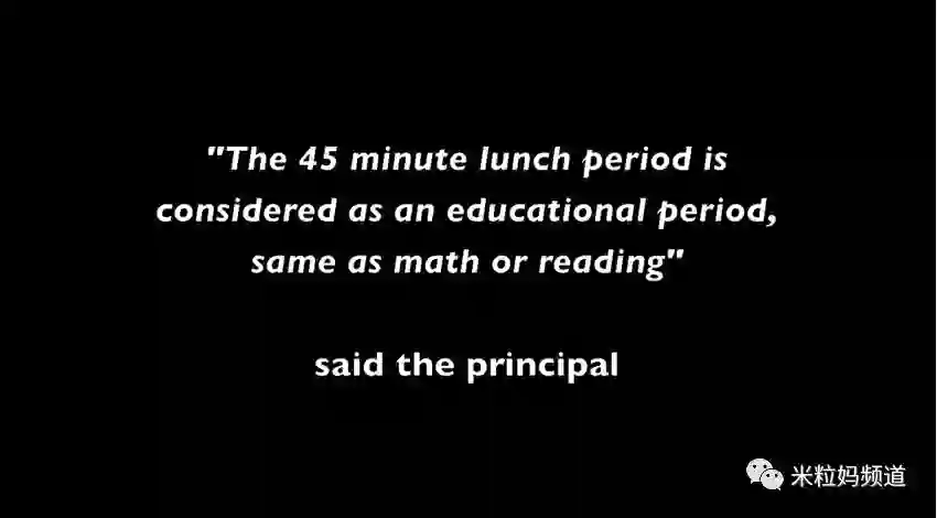 影片开始,校长的一句话就是最好的诠释:这45分钟的午餐时间,同样也是学习时间,跟他们的数学课或是阅读课没有什么不同。