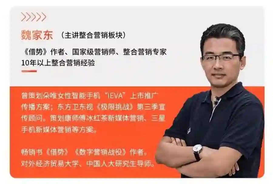 《借势》作者、《极限挑战》第3季宣传顾问、10年以上整合营销经验@魏家东老师将会为你详解: