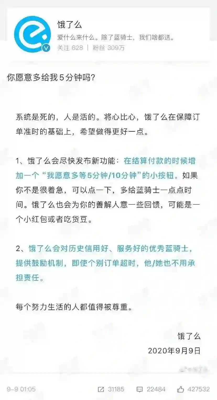 因为在此之前,饿了么抢先发出了一份回应: