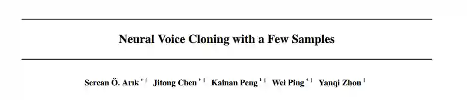 语音复制(voice cloning)是个性化语音接口的非常急需的功能。在此论文中,百度介绍了一种能以少量音频样本作为输入的神经语音复制系统。