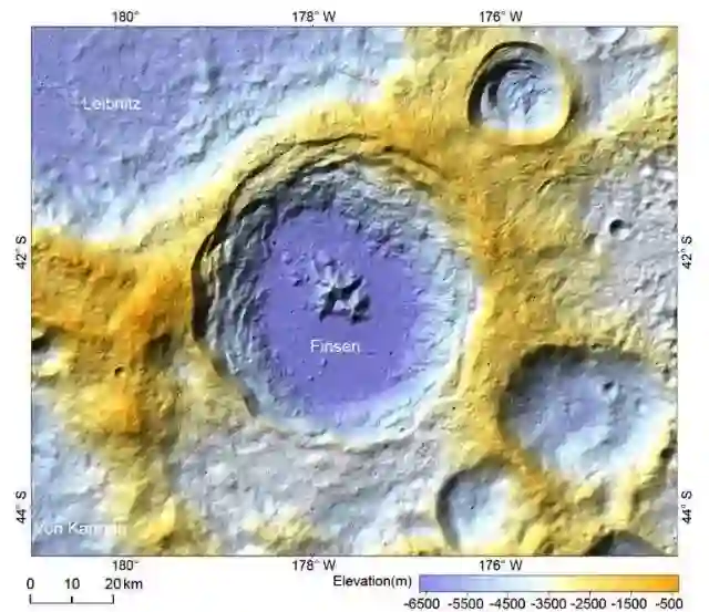 值得注意的是,CE-4号探测器的着陆点位于SPA盆地内的冯·卡门撞击坑内部,早期研究结果表明其表面被后续喷发的玄武岩所填充,那么这些不同于玄武岩的深部物质又是如何分布在着陆区域内的?对覆盖着陆区域的高分辨率遥感图像数据和高光谱数据的分析结果显示,着陆器和月球车位于玄武岩“平原”的撞击溅射物上,这些溅射物来自东北方向的芬森(FINSEN)撞击坑。40多亿年前SPA盆地形成时已将月壳减薄或完全剥离。FINSEN坑是由小天体撞击SPA盆地内部表面而形成,其犹如在SPA表面打的一口“深钻”一般,进一步将SPA盆地表面以下月球更深部物质挖掘出来,产生的溅射物四处抛射,呈辐射线撒布在冯·卡门撞击坑“平原”上。因此,CE-4 VNIS分析到的对象是FINSEN撞击坑挖掘、抛射到冯·卡门撞击坑表面的月幔物质。