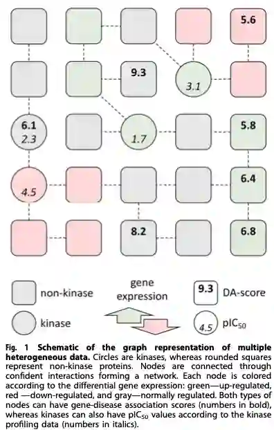 作者设计了将多种异质数据(包括生物网络,基因组学,抑制剂分析和基因疾病关联)整合到统一图结构的流程中。