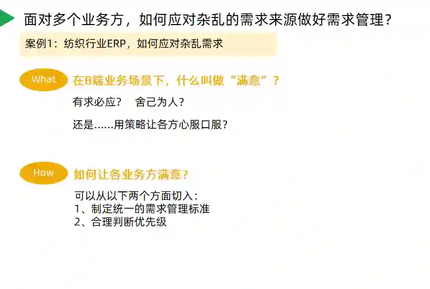 B端业务复杂,各方都在提出自身的需求,也都认为自身的需求紧急且重要,这时要如何面对杂乱的需求来源,判断优先级?如何让各方满意?