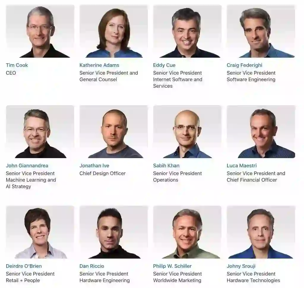 如今,有269名高管在运营苹果,涵盖了硬件、软件、设计、营销、财务、法务、零售、运营、企业发展等关键职能以及安全和通讯团队。