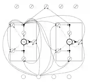 最后补一个图,是同一个 hidden layer 不同的 LSTM memory block 之间的递归关系示意图: