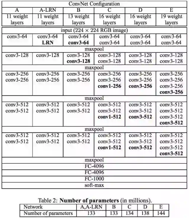 VGG 网络利用多重 3*3 卷积层来呈现复杂的特性。请注意 VGG-E 模块 3、4、5 的数值分别是 256*256 和 512*512,在序列里多次使用 3*3 过滤器来提取更为复杂的特性以及这些特性的组合。实际上,这就像是利用3层获得了大的 512*512 分类器。这就是卷积!这显然是大量参数以及学习力共同作用的结果。但是训练这些网络非常困难,而且必须把这些网络分解成更小的神经网络,对他们进行逐层训练。这么做的原因就是缺少强力有效地办法来调整模型或者在某种程度上是对利用大量的参数来提高大量搜索空间的办法予以限制。