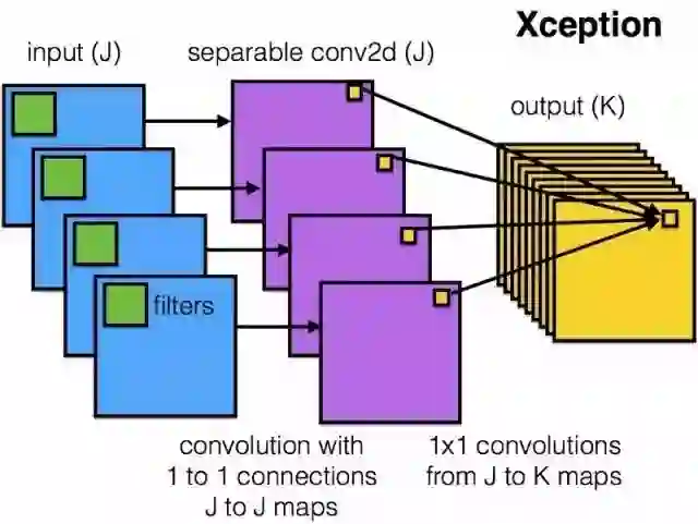 有趣的是,新版 Xception 结构还是受到了我们所研究的分离卷积过滤器的启发。