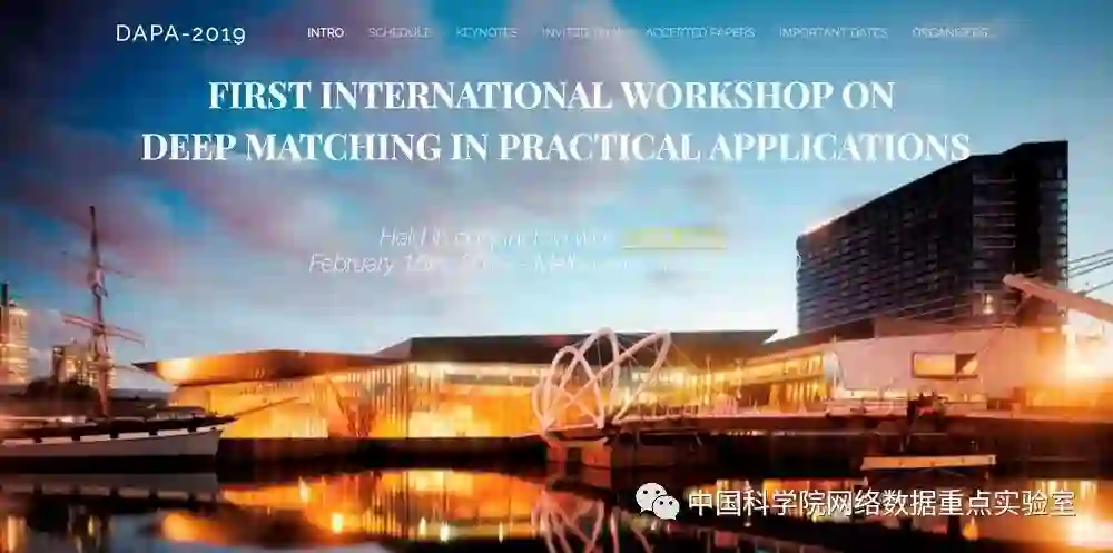 在上个月刚刚结束的国际信息检索与数据挖掘会议(ACM WSDM 2019)上,我们成功举办了First International Workshop on Deep MatchingIn Practical Applications( DAPA -2019)(https://wsdm2019-dapa.github.io)(组织者:范意兴、艾青遥、任昭春、洪亮劫、殷大伟、郭嘉丰),对匹配算法在真实的应用场景中面临的问题与挑战进行了探讨。