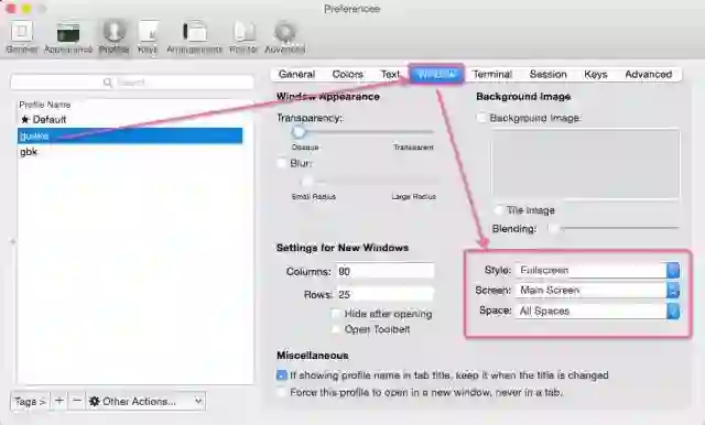 打开iTerm的Preferences..., 在ProfilesTab里面,点击下面的[+]添加一个新的profile,为什么要新建一个profile?答案是为了定制将来弹出的终端样式和大小等等参数。新的profile假设命名为guake,(注:guake这个名称是为了向Linux下的Guake终端致敬),你可以自己任意起个名称,下面会用到。