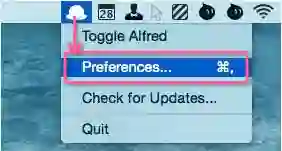打开Alfred,在菜单栏点击Alfred图标,打开Preferences...