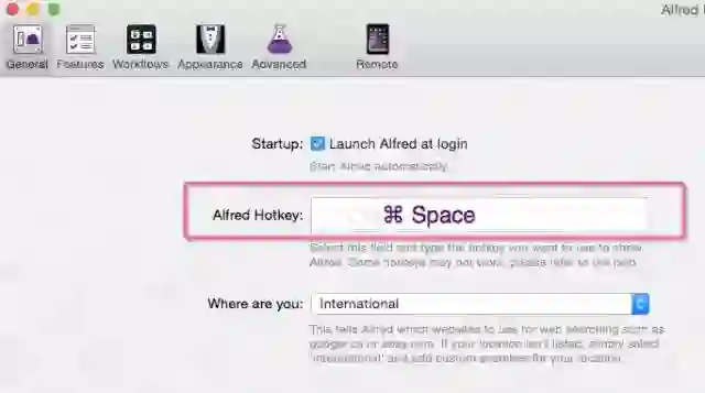 如下图所示,设置Alfred的快捷键为command + 空格
