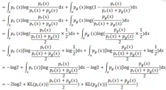 后面的两个KL散度的计算公式可以转化为Jenson-Shannon散度,也就是: