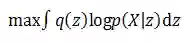 这个公式在复杂的模型和大规模数据面前极难求解。为了解决这个问题,这里将继续采用变分的方法用一个变分函数q(z)代替p(z|X)。第9章在介绍Dense CRF时已经详细介绍了变分推导的过程,而这一次的推导并不需要做完整的变分推导,只需要利用变分方法的下界将问题进行转换即可。