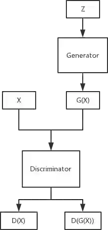 同VAE模型类似,GAN模型也包含了一对子模型。GAN的名字中包含一个对抗的概念,为了体现对抗这个概念,除了生成模型,其中还有另外一个模型帮助生成模型更好地学习观测数据的条件分布。这个模型可以称作判别模型D,它的输入是数据空间内的任意一张图像x,输出是一个概率值,表示这张图像属于真实数据的概率。对于生成模型G来说,它的输入是一个随机变量z,z服从某种分布,输出是一张图像G(z),如果它生成的图像经过模型D后的概率值很高,就说明生成模型已经比较好地掌握了数据的分布模式,可以产生符合要求的样本;反之则没有达到要求,还需要继续训练。