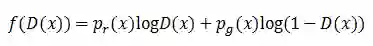 也就是说生成模型损失函数的理论最小值为-2log2。那么,一般情况下它的损失函数是什么样子呢?我们假设在某一时刻判别式经过优化已经达到最优,所以