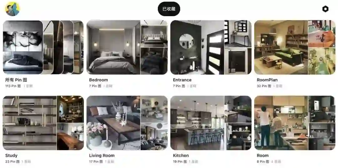 所有我觉得不错的图片,我都会统一规整到 Pinterest 里。我根据不同的房间创建了对应的图版,会在添加时一一归档,但在这个过程中我有一点小巧思。
