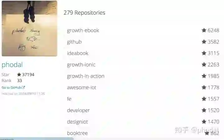 但是要知道我在 GitHub 上还有两百多个项目……。我最好的项目 Growth 也就只是 2263 个 star,前三都不上。要知道 Growth 的用户,可是近 10 万。