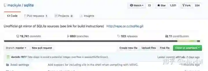 GitHub 上有一个 SQLite 源码项目,仍而并不是官方的项目。隔壁的阿猫阿狗,把别人的代码 Clone 下来,同步到 GitHub 上,居然能赚到这么多 star。