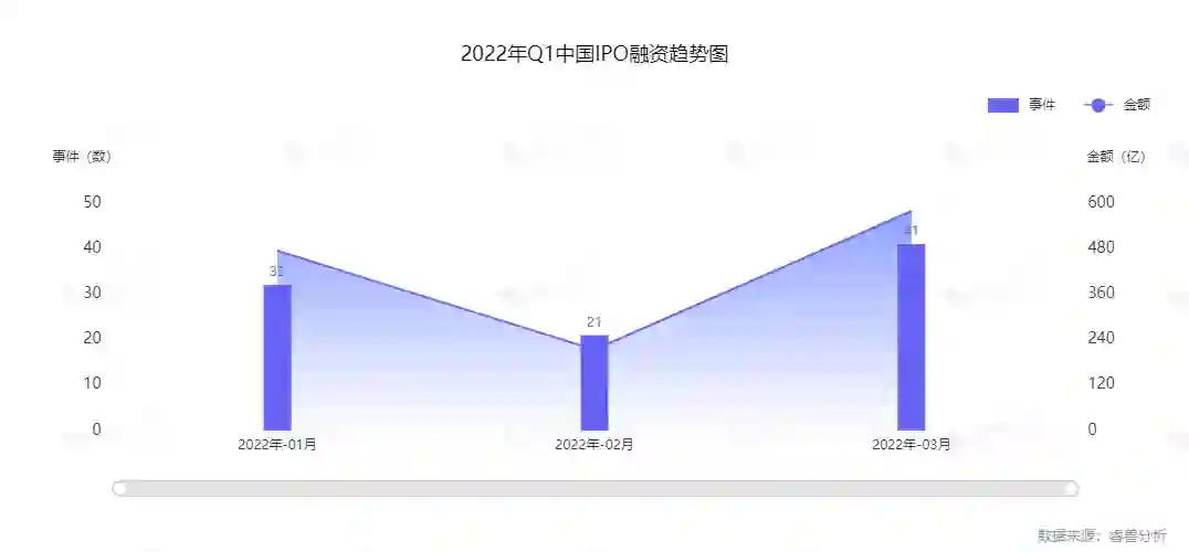 睿兽分析监测显示,中国2022年Q1共有94家企业完成上市,融资总额达1267.16亿元人民币,主要覆盖医疗健康、传统行业、智能制造、材料和企业服务等行业。Q1的IPO事件数同比下降36.91%,IPO融资金额同比下降42.02%。其中,太阳能光伏企业
