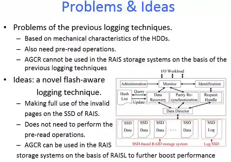 小写请求不仅会导致基于校验固态盘阵列的性能下降,而且会缩短各个成员盘的寿命。在传统磁盘阵列中有Parity Logging和Data Logging等日志技术通过延迟校验块更新优化RAID5的小写性能。但是这些现有的日志技术都是基于磁盘特性设计的,而没有考虑固态盘的特性。本文首先提出了一种基于闪存特性的日志技术RAISL,提高固态盘阵列的小写性能。RAISL充分利用固态盘内部由于异地更新产出的无效数据块,只需要将新数据块写入日志盘中。RAISL去掉了所有的预读操作,从而保证了负载的原始访问特性。在RAISL的基础上,本文结合根据负载访问特性调节闪存芯片读写代价的方法进一步提升固态盘阵列的读写性能。