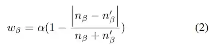 其中,wβ表示属性β的权重,nβ和n’β表示不同图谱中属性的数量,α表示权重系数,用于在对齐中强化属性所占的重要性。
