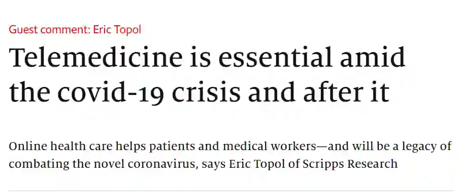 《经济学人》一位医生Eric Topol评论道:在新冠疫情爆发期间甚至在这之后,远程看护将显得至关重要。
