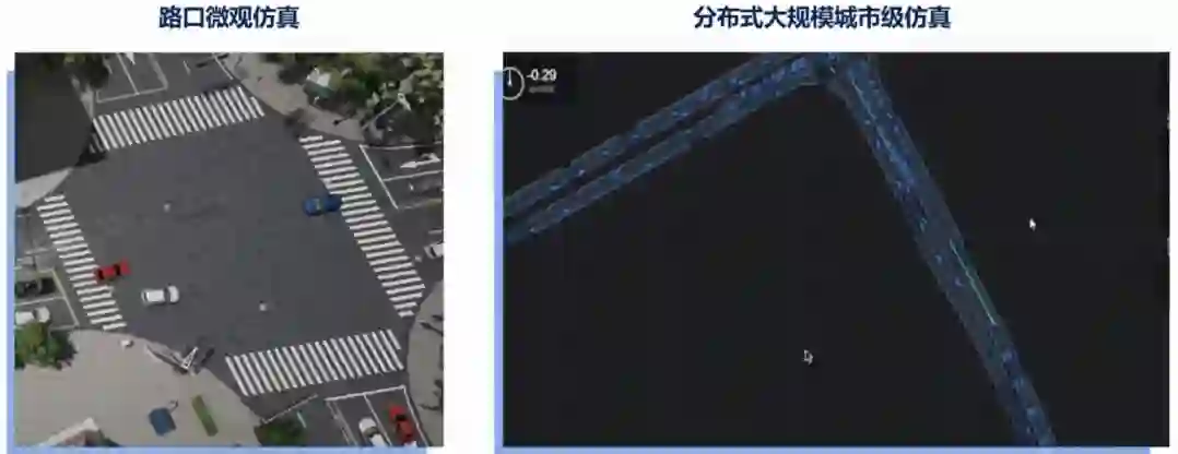 另一方面,除了一些路口,我们可能需要城市视角去观察一个交通体系。我们有路口级仿真,可以支撑一个城市级的大规模交通仿真,从广义的视角去描述整个交通体系的设计。当然,路口本身可能会跟自动驾驶某一个车辆的决策行为是高度相关,从宏观上来说,更多是体现在一个城市的交通管理层面。基于强化学习也好,基于其他人工智能方法也好,在进行迭代升级时,实际上提供的环境可以更多地反映真实世界,利用这样一个环境去做更多的决策研究。