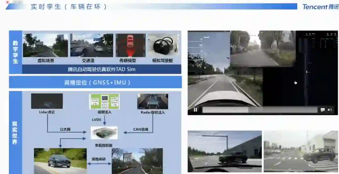 我们还做了一些增强现实的车辆在环系统,动图中间的摄像头是车载摄像头,实际路上是没有的,但是在虚拟环境下,我们可以实时注入车辆,在车辆在环的场景下,可以更好进行测试、验证。