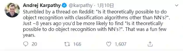 文章结尾我想引用李飞飞高徒、特斯拉 AI 负责人 Andrej Karpathy 的一条推特作为结尾。
