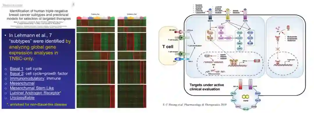 三阴性乳腺癌(TNBC)异质性强,缺乏特异性靶点,化疗是其主要治疗手段。而一旦发生耐药,则迅速出现复发转移,迫切需要寻找治疗靶点为TNBC提出新的治疗策略。20世纪以来主要集中于TNBC分子分型的探索。2011年范德堡大学Lehmann教授通过对587例TNBC患者的基因芯片数据进行聚类分析,最早将TNBC分为BL1、BL2、IM、M、MSL、LAR七种亚型。2019年,复旦大学团队通过对465例原发性TNBC样本进行高通量基因芯片和测序分析,将TNBC划分为四种亚型,包括腔面雄激素受体型、免疫调节型、基底样免疫抑制型以及间充质型,并深入分析了各个亚型的临床意义和治疗策略。TNBC的分子分型推动了靶向治疗的实施。