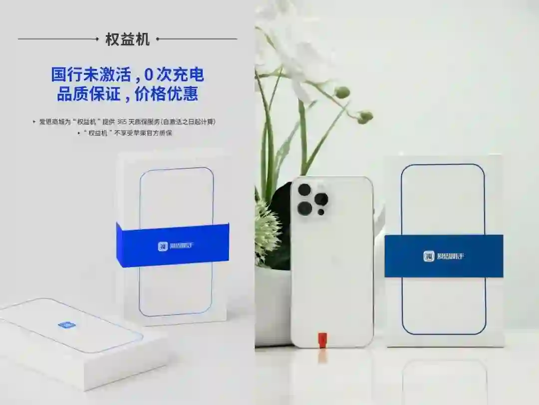 本次活动机型为 Apple 官方「权益机」,权益机是指苹果厂家通过第三方渠道统一打包给第三方商家无拆无修、纯原装、未激活未使用过的机器。为什么选择这一类机型呢?实际上就是 Apple 因目前售后成本以及维护成本增加,去掉了售后成本为渠道商提供价格优势的机器,除无官方保修之外,本质是完全与全新零售机器相同,也并非市面上的资源机/BS或者是7天无理由退货的机器。