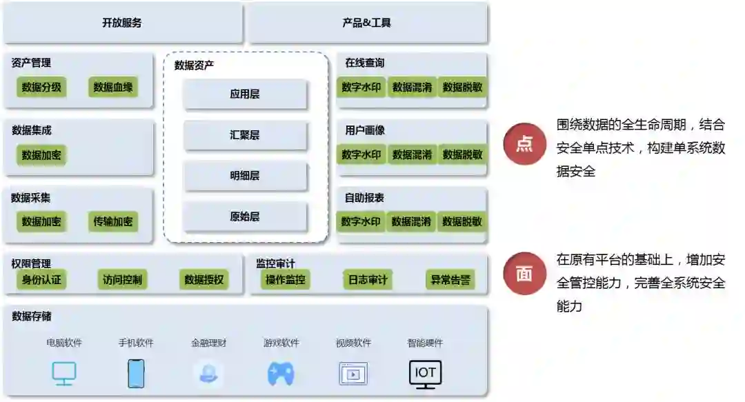 数据集中存放,如何做到数据平台管理和数据访问的权限分离?每个业务部门有多个角色,每个角色对应的数据权限都可能不一样,如何有效控制?数据一旦发生泄漏风险,如果做到溯源?跨产品的数据如何安全的共享?