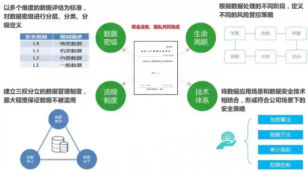 既然大数据中心是整个公司中场部门,负责支撑全公司的数据业务,安全规范的治理采取了自上而下的策略,联合公司法务和隐私相关部门共同制定,最终完成360集团数据安全管理规范,让数据的使用合理、合规、合法,这也让我们的治理工作多了一份理解、少了一些阻力。