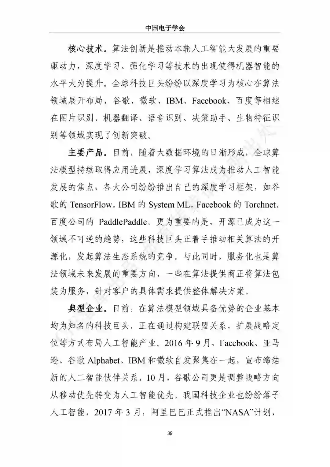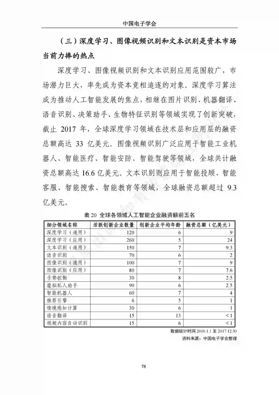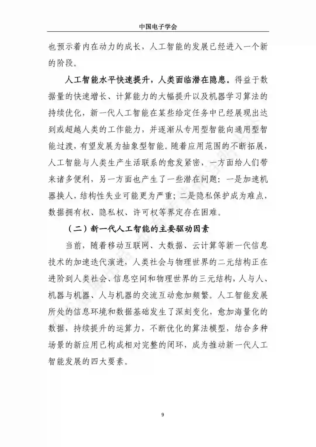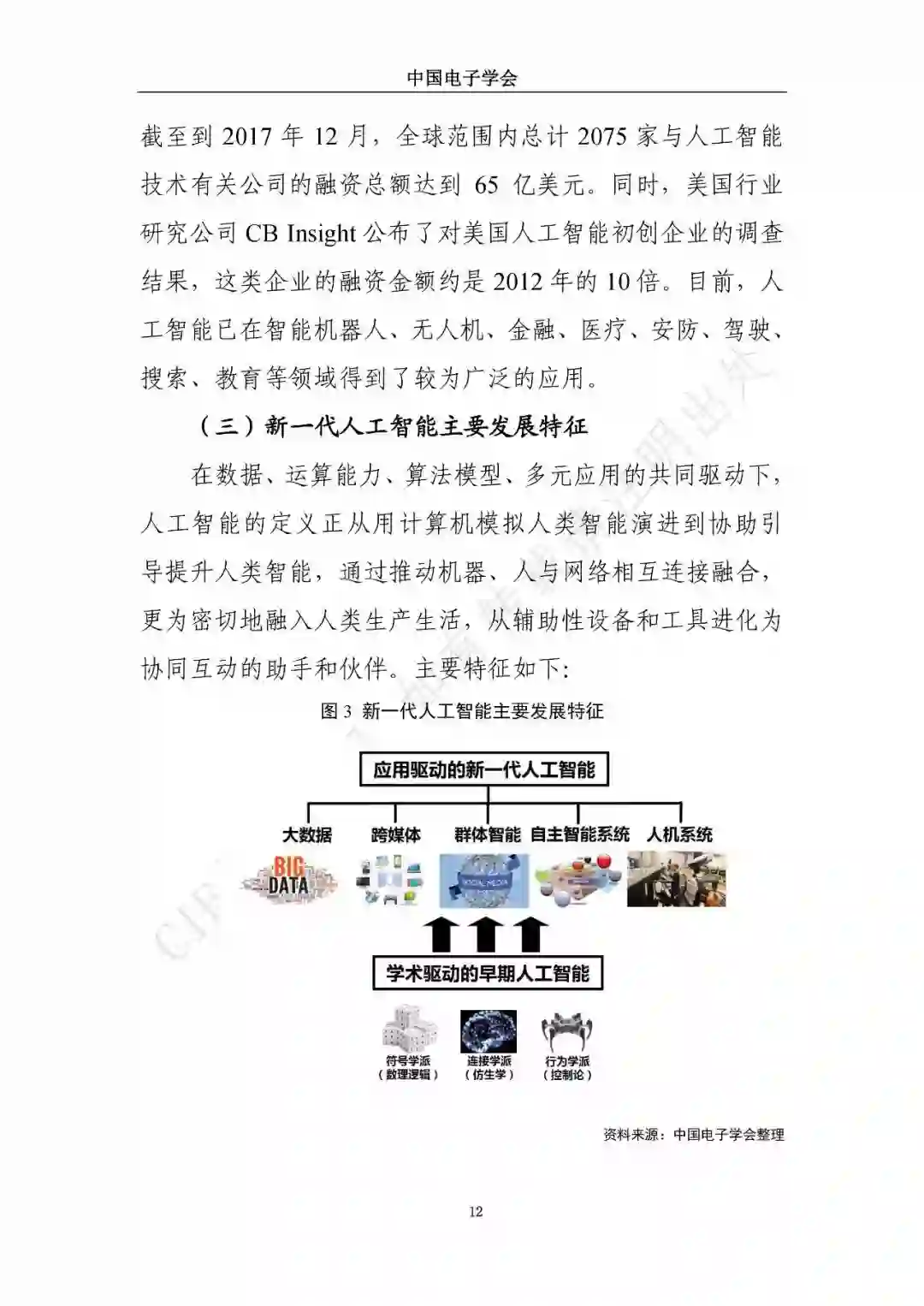 近日,中国电子学会/CIE智库发布了《新一代人工智能发展白皮书》。本白皮书重点围绕新一代人工智能面临的新形势、驱动的新因素、呈现的新特征,详细介绍了新一代人工智能发展特征、技术框架及产业化应用,展望了新一人工智能中长期技术及产业发展趋势,分析了人工智能领域的投融资特征及趋势,最后,提出了推动新一代人工智能发展的措施建议。
