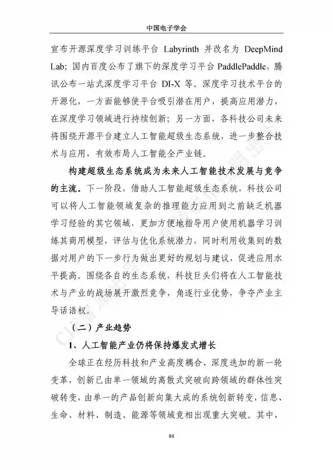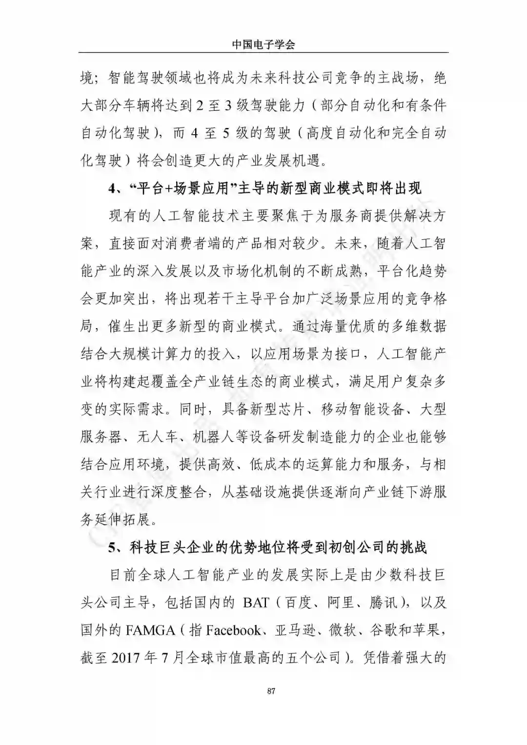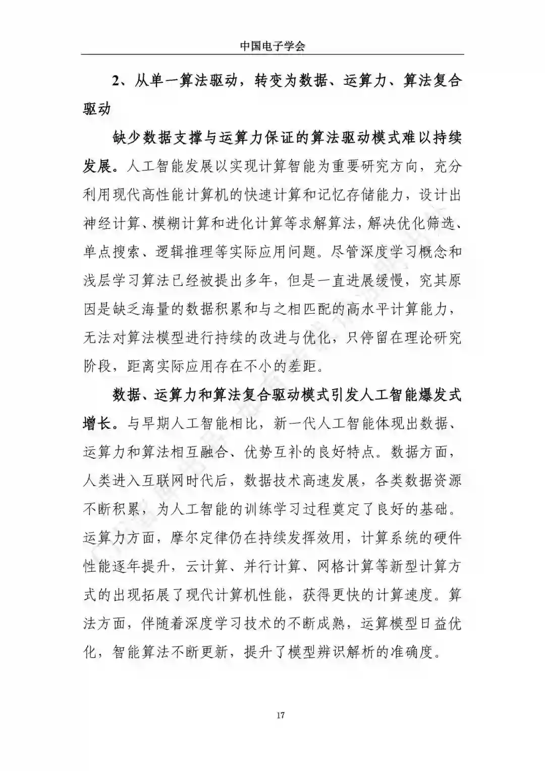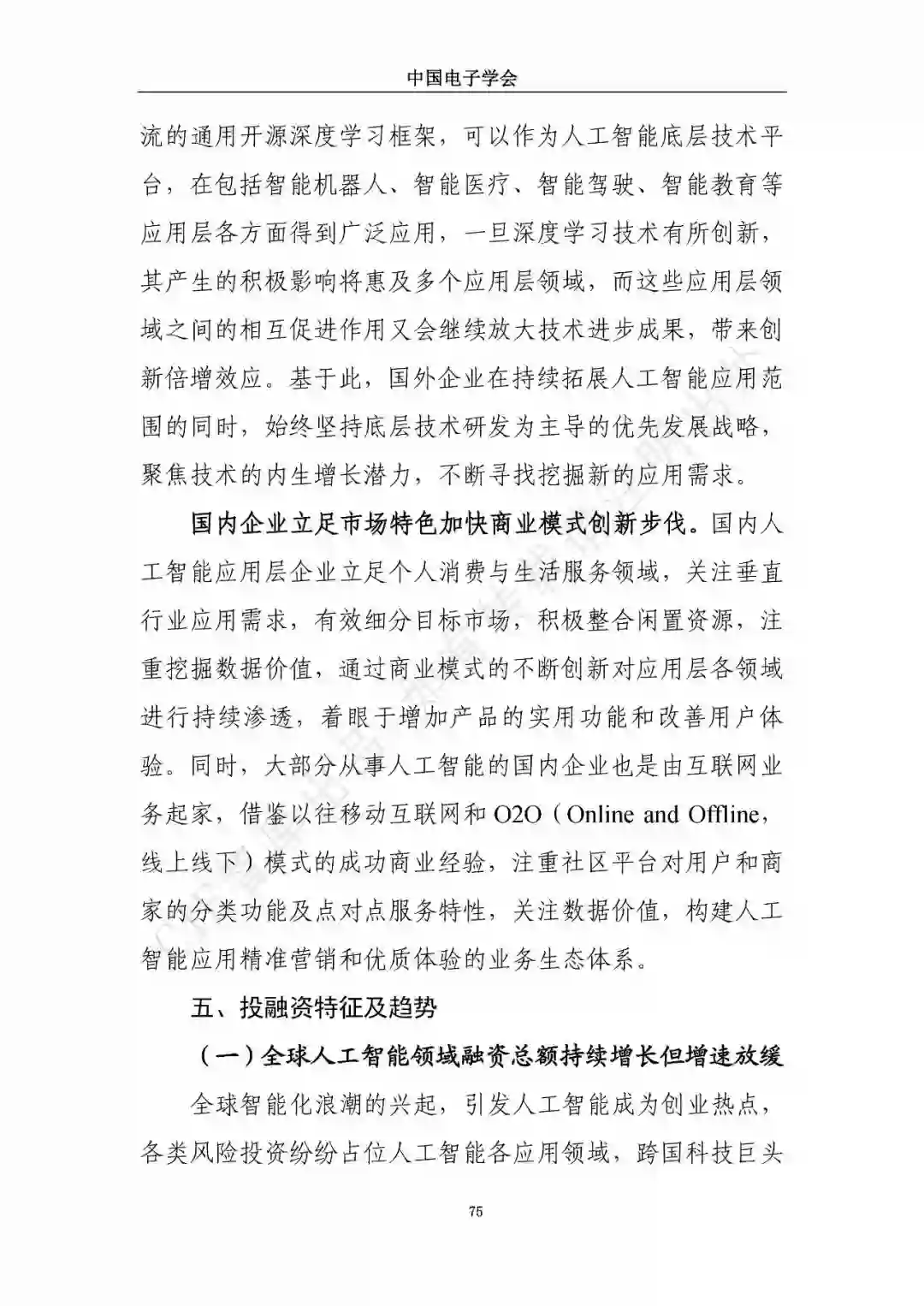 近日,中国电子学会/CIE智库发布了《新一代人工智能发展白皮书》。本白皮书重点围绕新一代人工智能面临的新形势、驱动的新因素、呈现的新特征,详细介绍了新一代人工智能发展特征、技术框架及产业化应用,展望了新一人工智能中长期技术及产业发展趋势,分析了人工智能领域的投融资特征及趋势,最后,提出了推动新一代人工智能发展的措施建议。