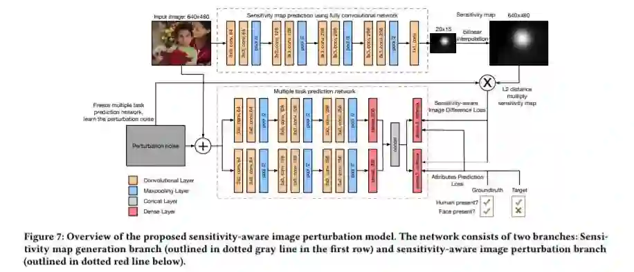 摘要:由于社交网络平台上发生了多起用户数据泄露事件,社交媒体的隐私问题近来备受关注。随着当前机器学习和大数据的发展,计算机算法通常充当隐私泄露的第一步过滤器,自动选择包含敏感信息的内容,比如包含人脸或车牌的照片。在本文中,我们提出了一种新的算法来保护敏感属性不受机器的影响,同时又能使这些变化不被人类察觉。特别是,我们首先进行了一系列的人体研究,以调查影响人类对视觉变化敏感性的多种因素。我们发现人类的敏感性受多种因素的影响,从低层次的特征如光照、纹理,到高层次的属性如对象情感和语义。基于我们的人类数据,我们首次提出了人类敏感性地图的概念。利用灵敏度图,我们设计了一个具有人的灵敏度感知的图像扰动模型,该模型能够修改敏感属性的计算分类结果,同时保留其余属性。在真实数据上的实验表明,该模型在人的感知隐私保护方面具有较好的性能。