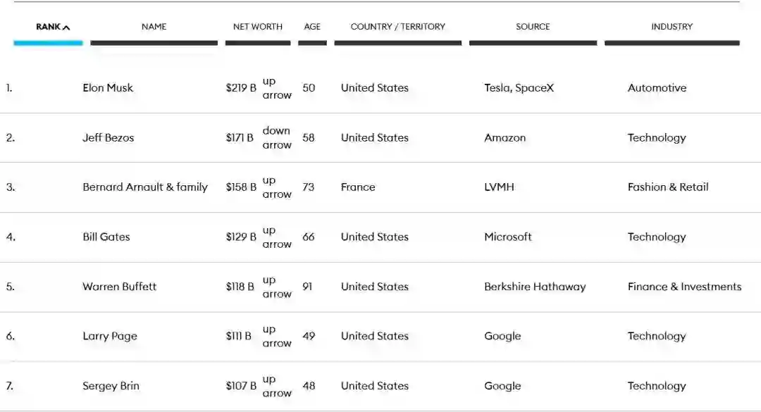 【福布斯发布2022全球亿万富豪榜,马斯克登顶】榜单显示,受去年全球股市震荡的影响,2022福布斯全球亿万富豪榜的上榜人数较去年减少87位,降至2668位。埃隆·马斯克(2190亿美元)、杰夫·贝索斯(1710亿美元)分列一、二名。两位中国富豪跻身TOP25,钟睒睒以657亿美元财富位列第17位,张一鸣以500亿美元财富排在第25位。
