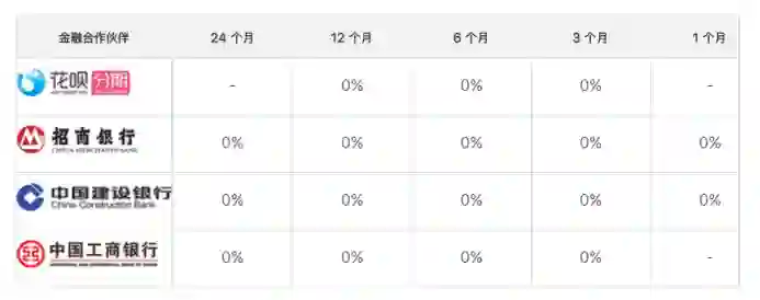 合作,三大银行的信用卡都支持 24 期免息分期,花呗最高只支持 12 个月的免息分期,想要 24 期花呗免息分期的话,只能到天猫的官方旗舰店购买。