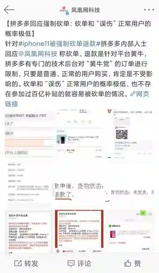 尽管拼多多回应称强制砍单是为了防止黄牛,“误伤”正常用户概率极低,但显然“受伤”的不是个例。