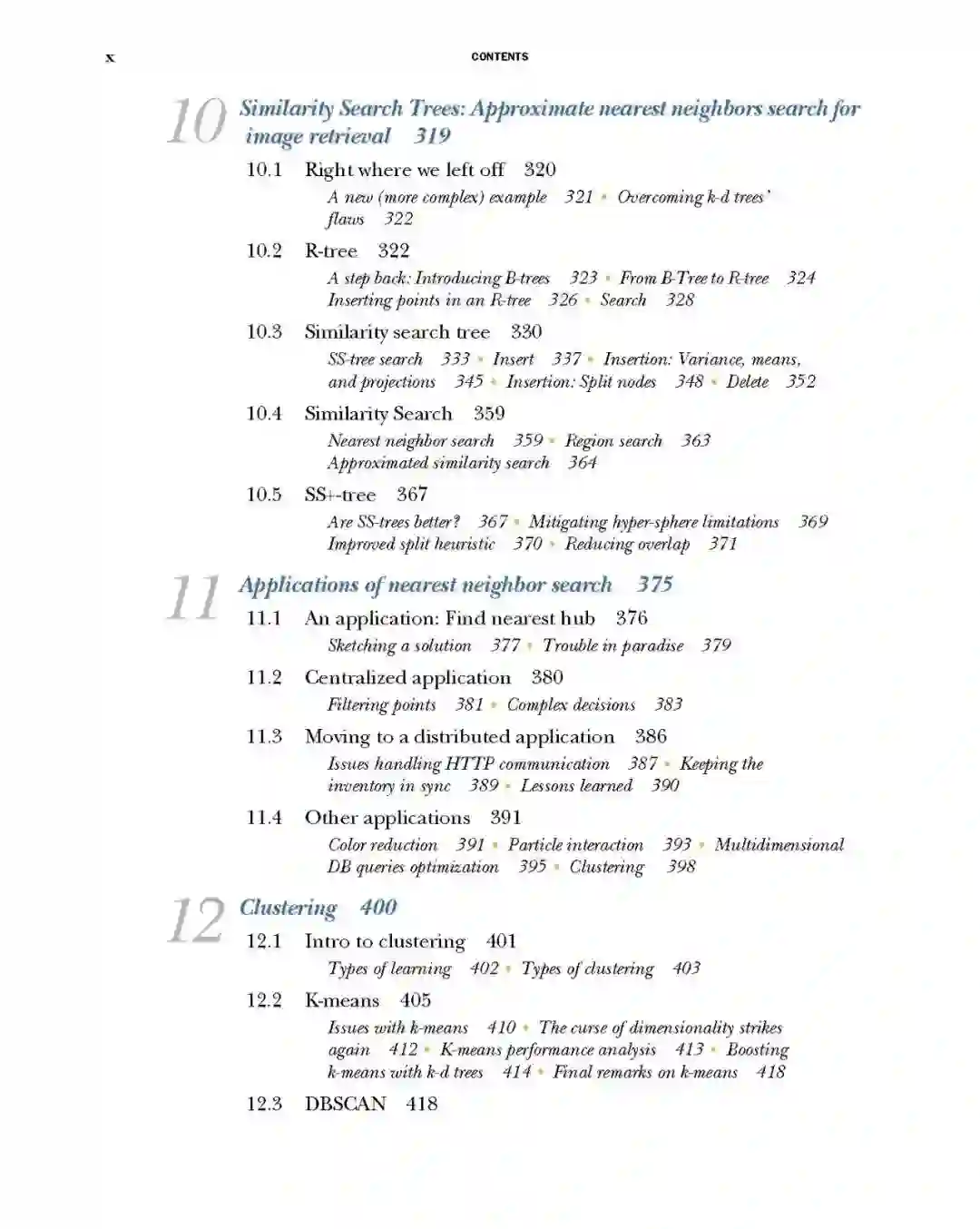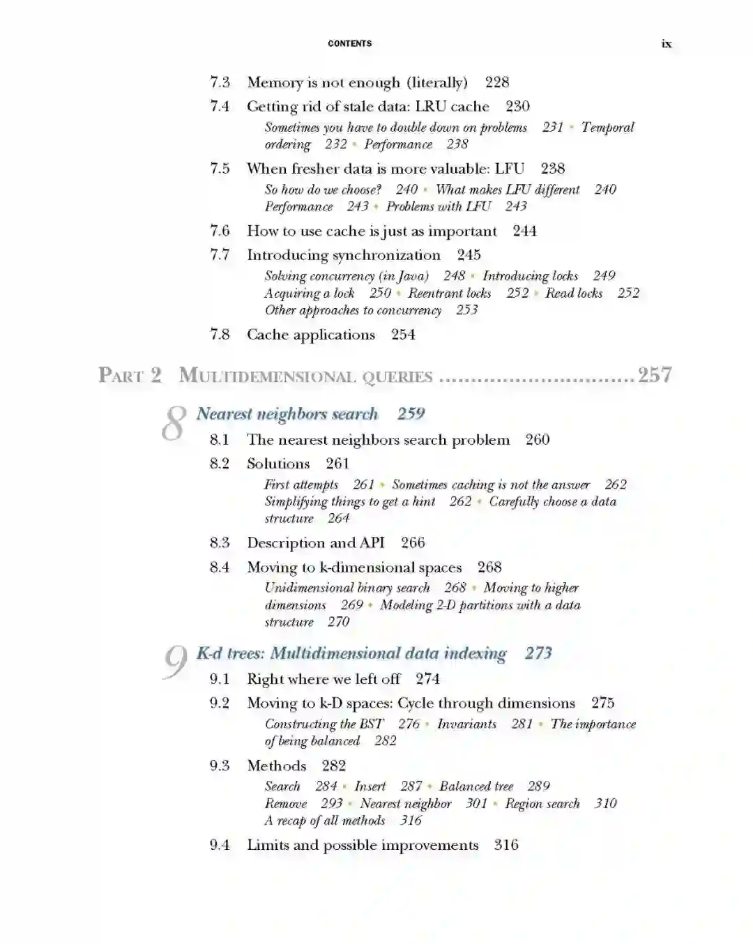 第2部分介绍了搜索中的另一种特殊情况: 处理多维数据、索引该数据和执行空间查询。我们将再次展示特别数据结构如何在使用基本搜索算法的基础上提供巨大的改进。但是,本部分还描述了其他重要的主题:集群、高度利用空间查询和分布式计算,特别是使用MapReduce编程模型。