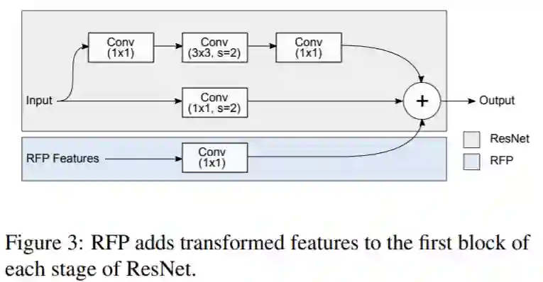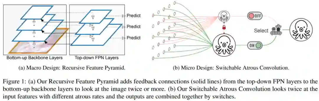 RFP(递归特征金字塔)= Recursive Structure + Bottom-up Backbone Layers + Top-down FPN Layers,作者称实现了 looking and thinking twice or more