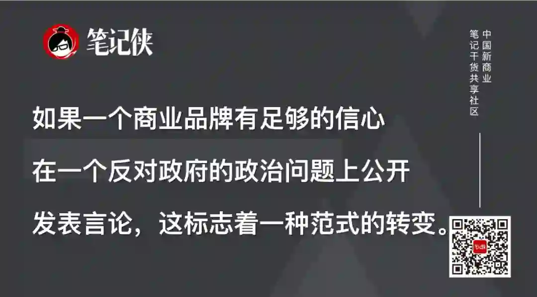 如果一个商业品牌有足够的信心在一个反对政府的政治问题上公开发表言论,这标志着一种范式的转变。