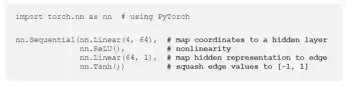 为了使GNN更好地在规则图上工作,(比如图像),我们需要应用一些技巧。例如,我们可以通过使用如下可微函数来学习预测任意一对像素之间的边,而不是使用预定义的高斯滤波器。