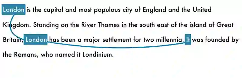 人类的语言很复杂,但在使用过程中却是倾向于简化和省略的。比如他,它,这个,那个,前者,后者…这种指代的词,再比如缩写简称,北京大学通常称为北大,中华人民共和国通常就叫中国。这种现象,被称为共指现象。