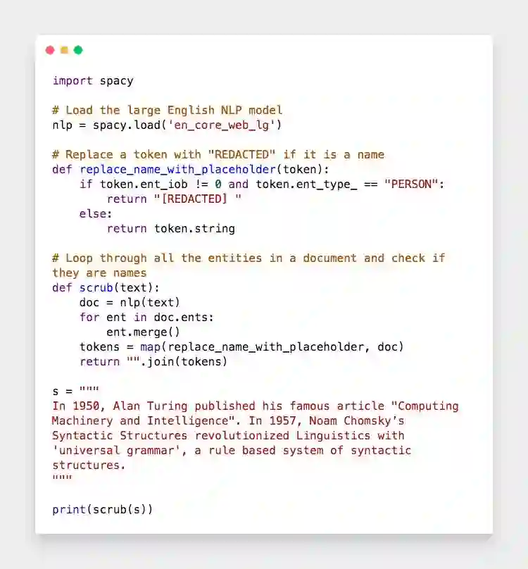 我们接下来进一步,构建一个数据清理器。假设你拿到了一份全国酒店入住人员登记表,你想把里面的人名找出来替换掉,而不改动酒店名、地名等名词,可以这样做: